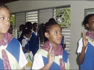 From left: Kecia McKoy, Kiana Wong and Ashley Charlton, new Doctorbirds of the Second St Andrew Troop, salute as they make their promises at an induction ceremony recently.- Contributed