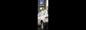 The GM logo hangs over an unsold 2009 Acadia sports-utility vehicle on the lot at a GMC truck dealership in the south Denver suburb of Littleton, Colorado, October 12. General Motors Corp on November 7, said it lost US$2.5 billion in the third quarter and warned that it could run out of cash in 2009. GM also said it has suspended talks to acquire Chrysler, and said its cash burn for the quarter accelerated to US$6.9 billion due to a severe US auto sales slump.