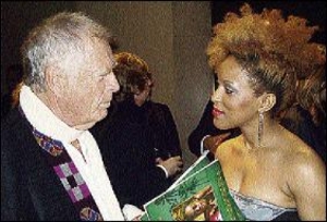 Former recipient of an AFJ award, Chris Blackwell, discusses the entertainment scene with Jamaican-born writer, director and producer, Candice Vernon, at the gala.