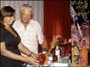 Lisa Bell, divisional manager for Lascelles Wines and Spirits, shows off some products to Whylie 'Chunky' Lopez, general manager of Caymanas Golf and Country Club.