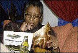 Carole Fullerton (left) jokes with Alice Dillworth over a bottle of Kingston Beer.